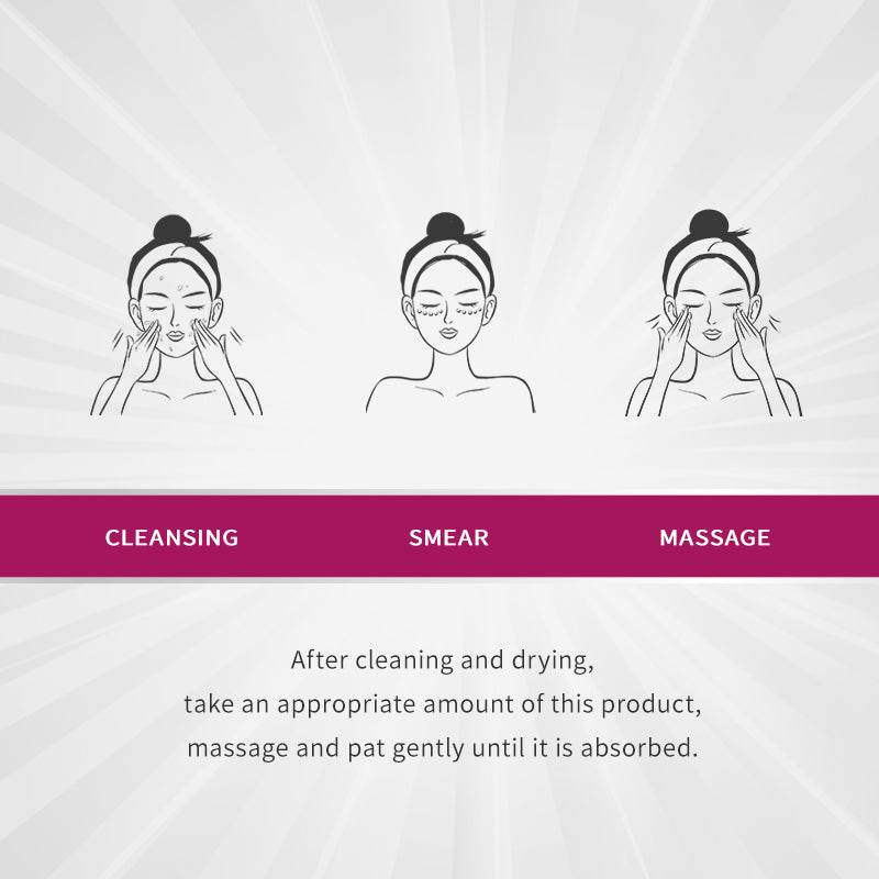 After cleaning and drying, take an appropriate amount of this product, massage and pat gently until it is absorbed.