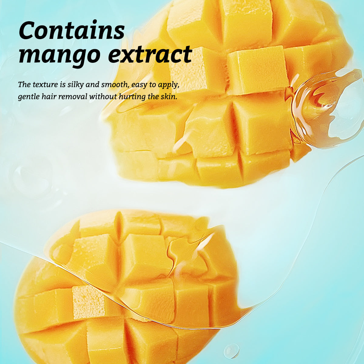 Mango Extract: Enriched with precious mango essence, it nourishes the skin and provides moisturizing and soothing effects, reducing irritation during the hair removal process and maintaining skin softness and smoothness.