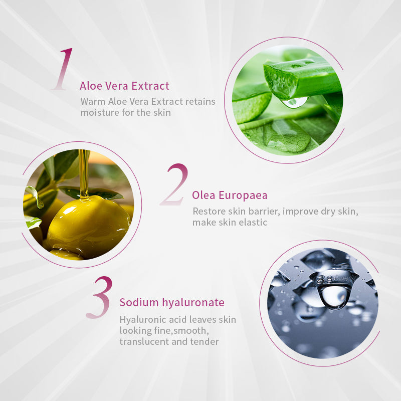 Enriched with soothing aloe vera and refreshing olive extract, our Olive Nourishing Moisturizing Essence provides ample hydration to the skin. With the unique formulation infused with hyaluronic acid, it deeply moisturizes the skin, resulting in a refined, smooth, transparent, and tender complexion.