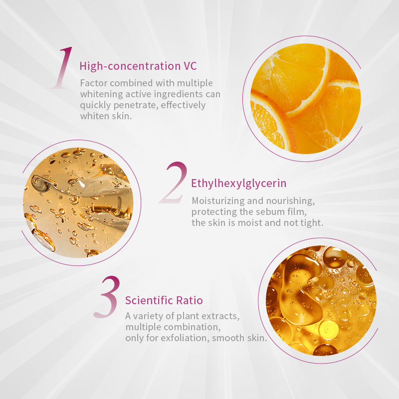 High Concentration of Vitamin C: Vitamin C is the core ingredient of our essence, renowned for its exceptional whitening effects. It helps diminish melanin, reduce its production, brighten the skin tone, and reveal a radiant and luminous complexion.