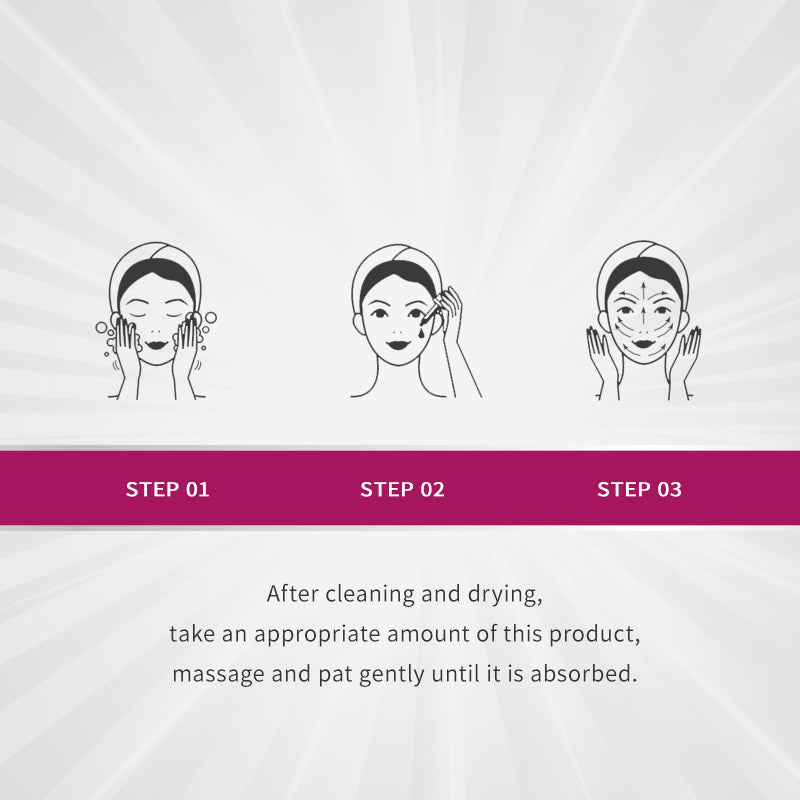 After cleaning and drying, take an appropriate amount of this product, massage and pat gently until it is absorbed.